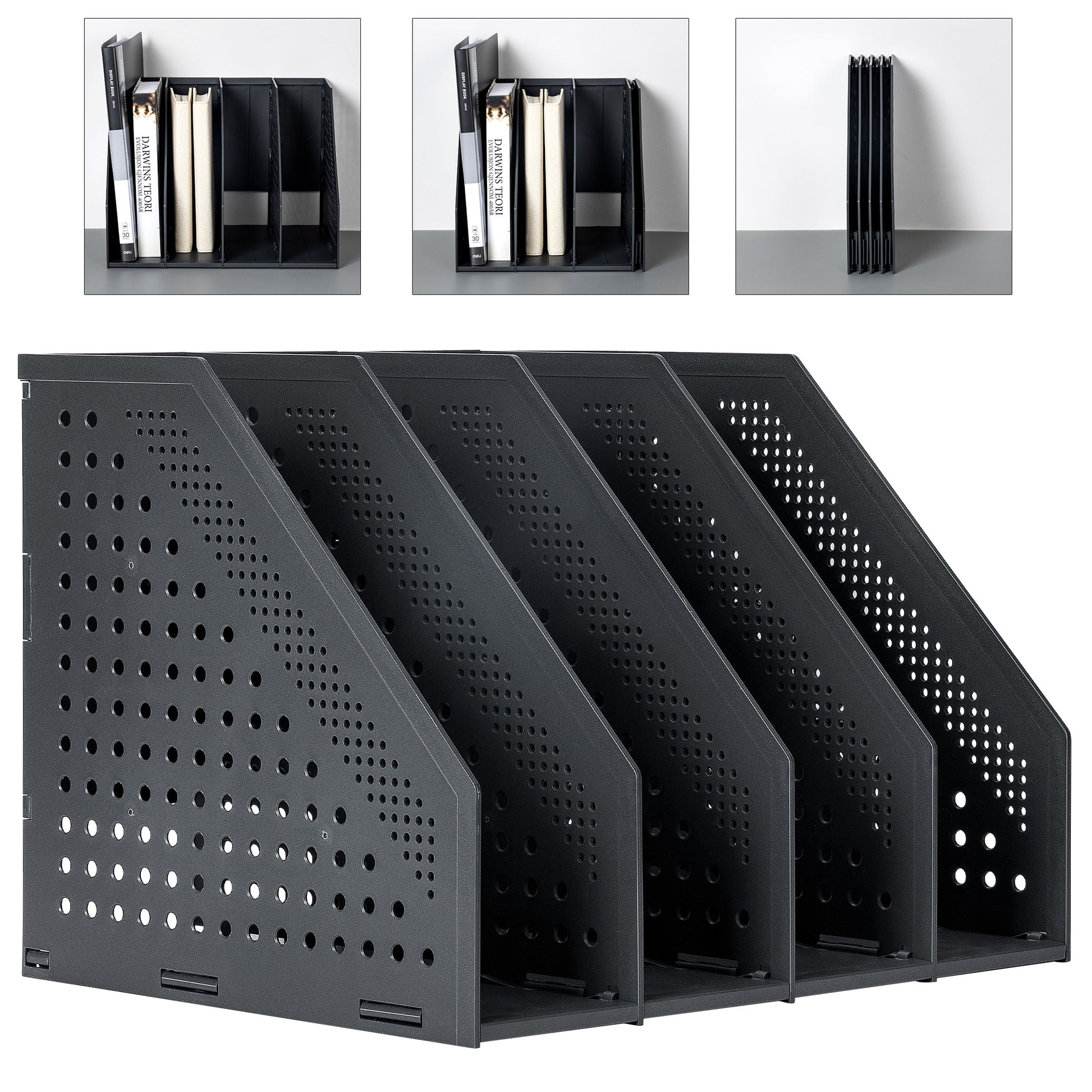 Deli Collapsible Magazine File Holder Magazine Rack Desk Organizer, 4 Vertical Compartments, Black