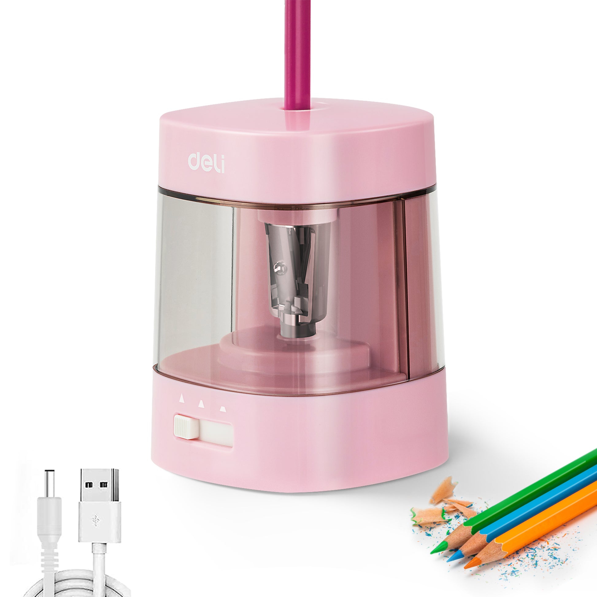 Deli Electric Pencil Sharpener,Suitable for No.2 Pencils Colored Pencils, USB & Battery Operated, Pink