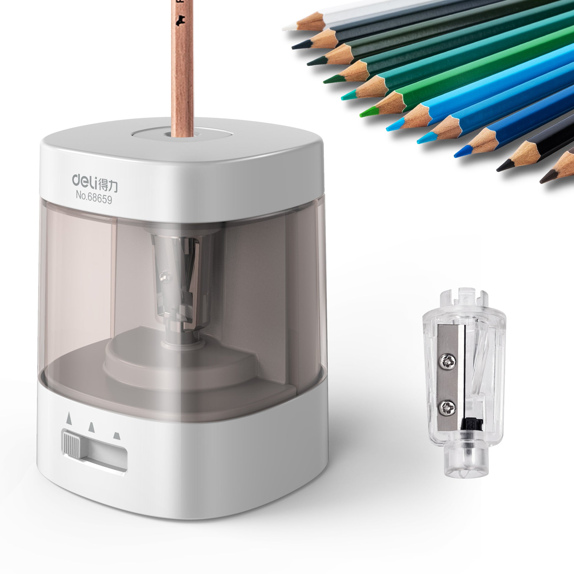 Deli Electric Pencil Sharpener,Suitable for No.2 Pencils Colored Pencils, USB & Battery Operated, White