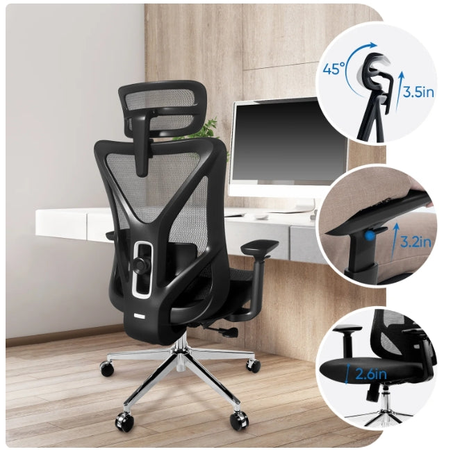 Deli Ergonomic High Back Office Chair, Adjustable Computer Desk Chair with Lumbar Support, 330lb, Black
