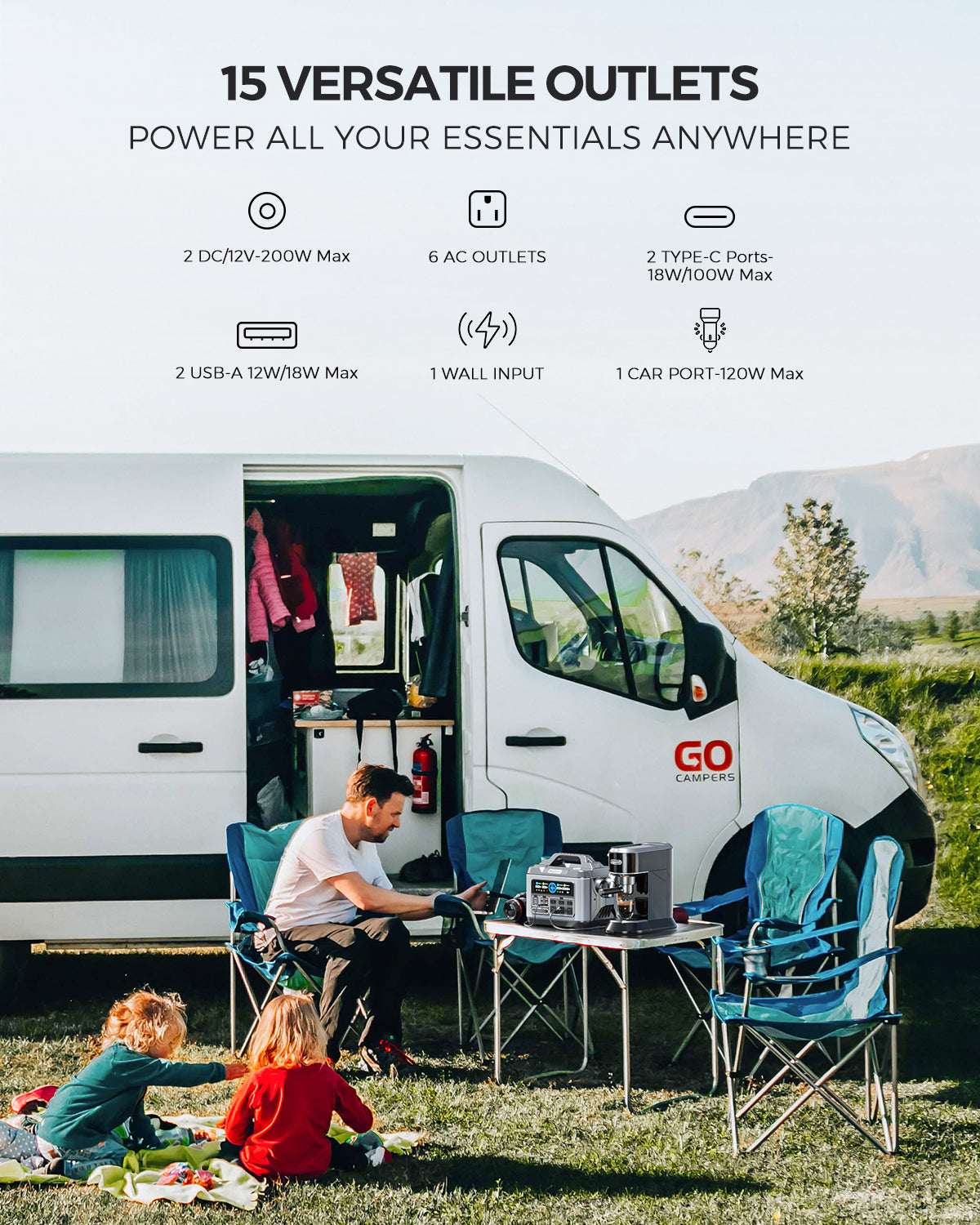Portable Power Station PryMAX 1110Wh Outdoor Solar Generator with 6*110V/1200W Pure Sine Wave AC Outlets, Solar Lithium Battery Pack for Outdoor RV/Van Camping, CPAP, Emergency