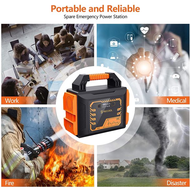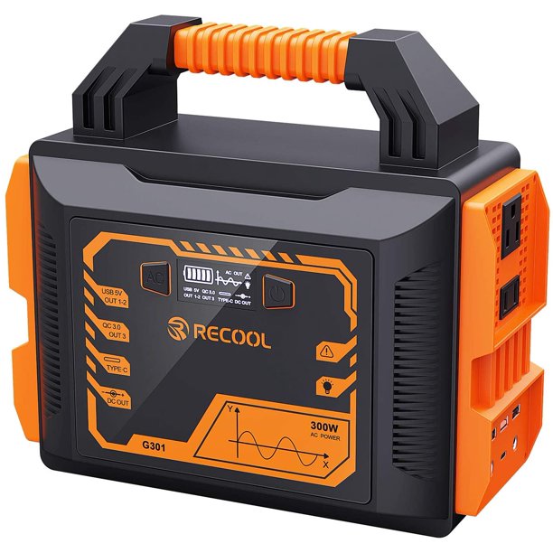 RECOOL Portable Power Station, 300W Travel Backup Home Emergency Rechargeable Lithium Battery Generator
