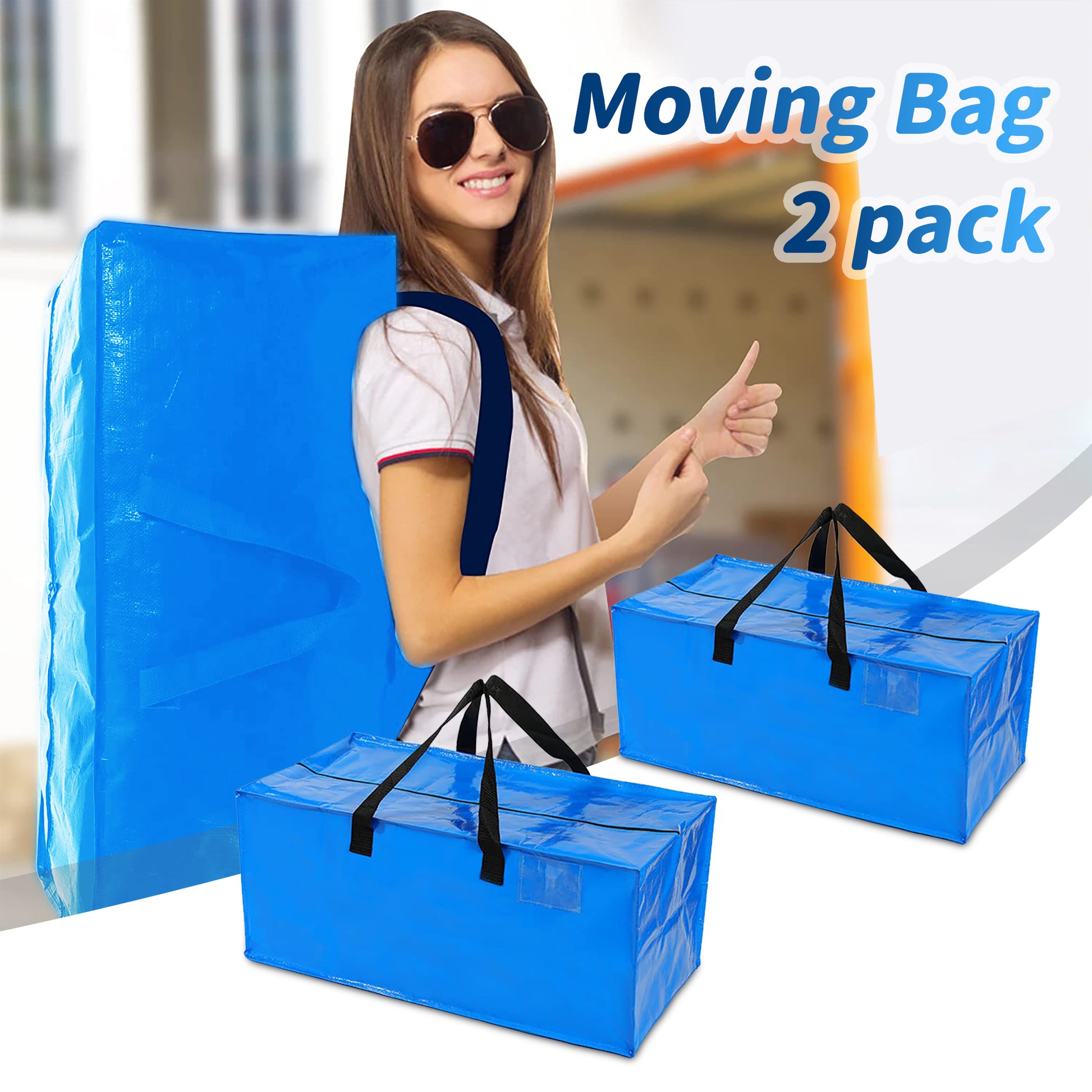 VUSIGN Moving Bags Heavy Duty Extra Large with Strong Handles Backpack Straps & Zippers,Blue Moving Totes,Packing Bags for Moving,Heavy Duty Storage Bags Compatible with Ikea Frakta Cart,2Pack
